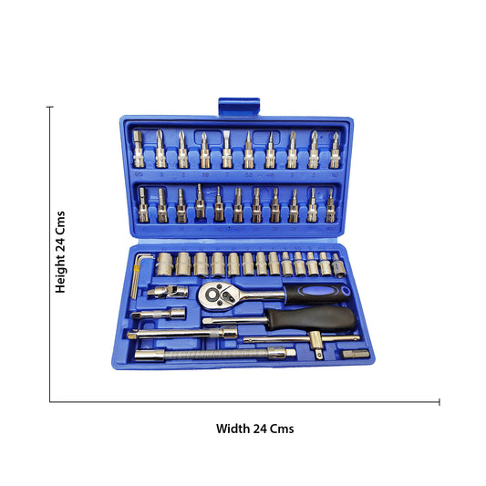 Aegon SS-46 1/4" 46 Pieces Heavy Duty Combinational Ratchet Socket Wrench Spanner Chrome Vanadium Hand Tool Kit For Repairing Work, DIY, Auto Repairs Car & Bike