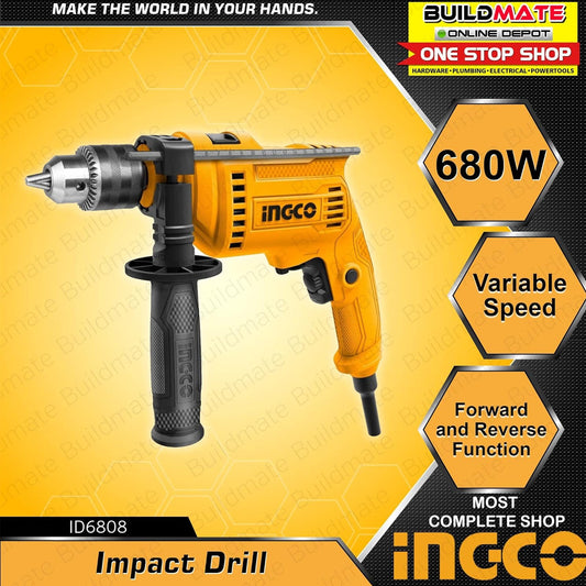 Ingco ID6808 Percussion Drill - Professional 680W Hand-Operated Tool with Reversible Variable Speed and Lock Speed Button