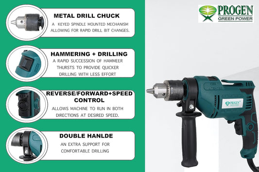 PROGEN 9213-HG 800W Electric Impact Drill 13mm with Forward/Reverse Function with Variable Speed Control ( Copper Armature, 2800 RPM, Chuck 13mm)