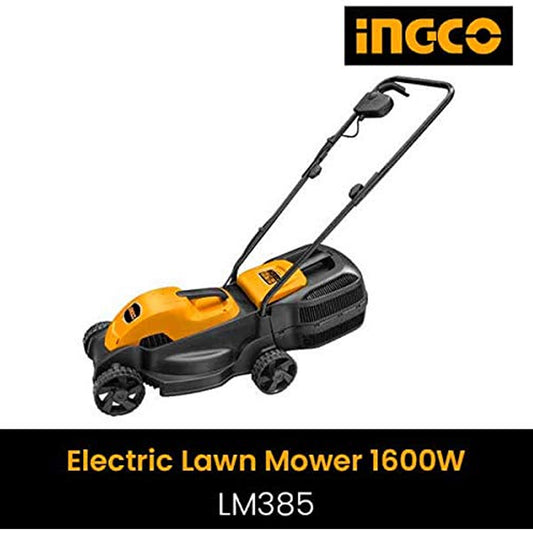 Ingco LM385 Electric Lawn Mower - Powerful 1600W Motor, 38cm Cutting Diameter, 3 Height Adjustments, 45L Grass Box