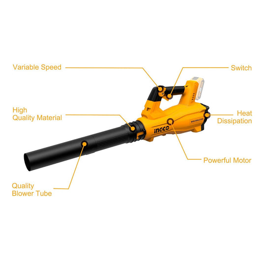 Ingco CABLI20408 20V Li-ion Leaf Blower | Cordless Handheld Sweeper with Variable Speed - Includes 2 Batteries & Charger
