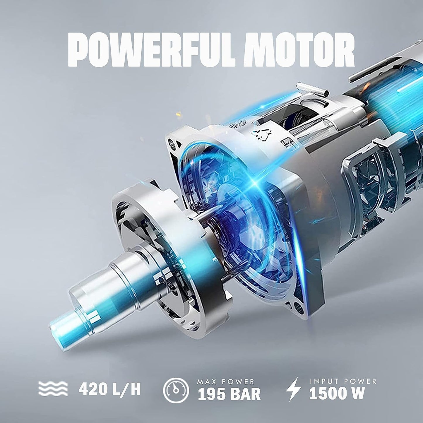 Equipped with a motor capacity of 1500W, the APW-1500 delivers the necessary power for a wide range of cleaning applications. Whether you're cleaning vehicles, bikes, sidewalks, decks, or any other surfaces, this pressure washer ensures reliable performance every time. Its compact design and foldable handle make it convenient to store and easy to handle.