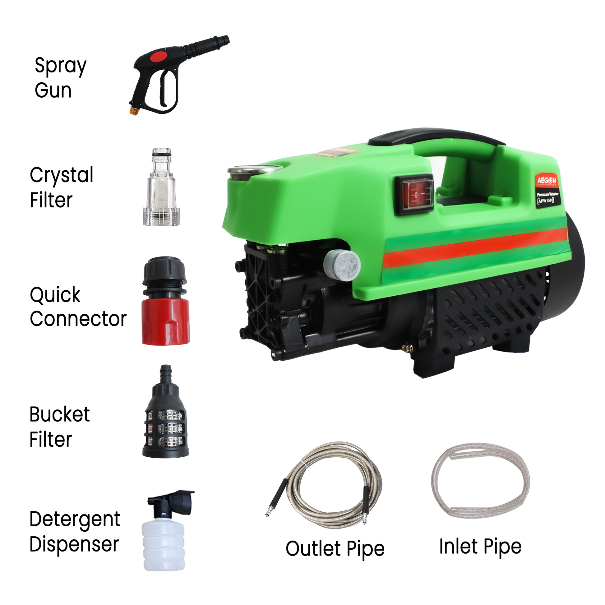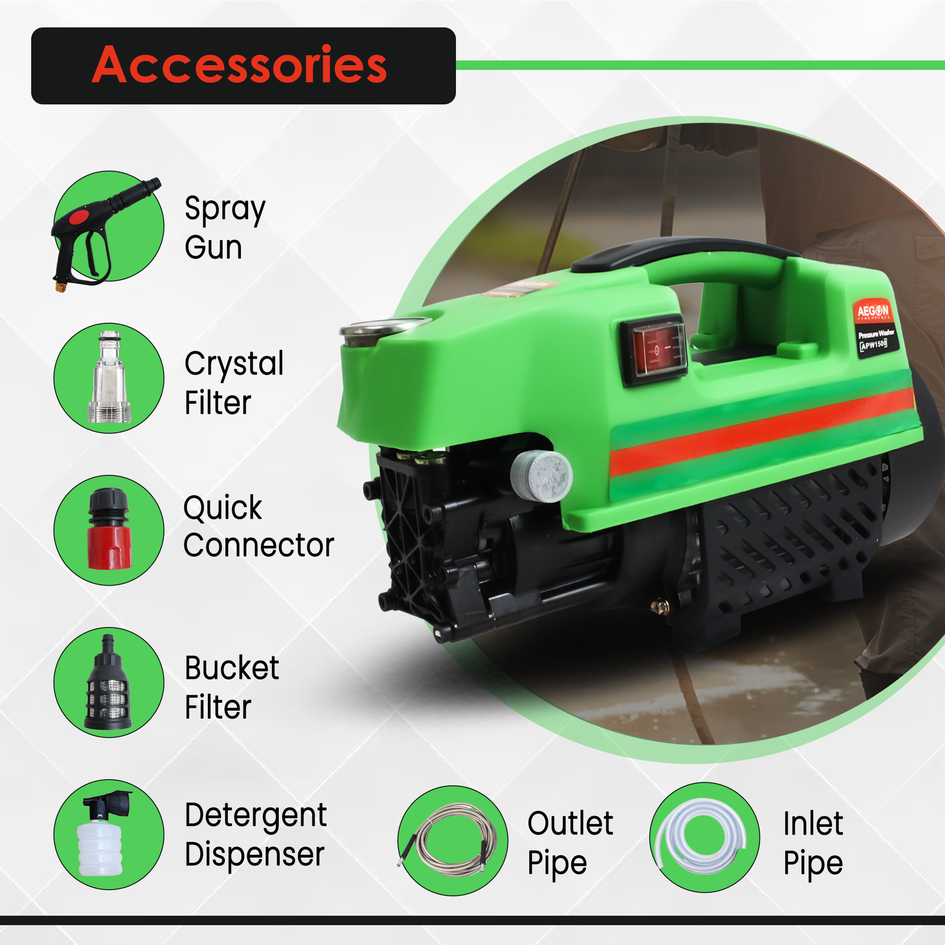 Experience the power of Aegon's APW-1500 Pressure Washer, designed to tackle all your cleaning needs. With its highly powerful brush motor and outstanding water filtration system, this pressure washer effortlessly removes stubborn dirt and grime.