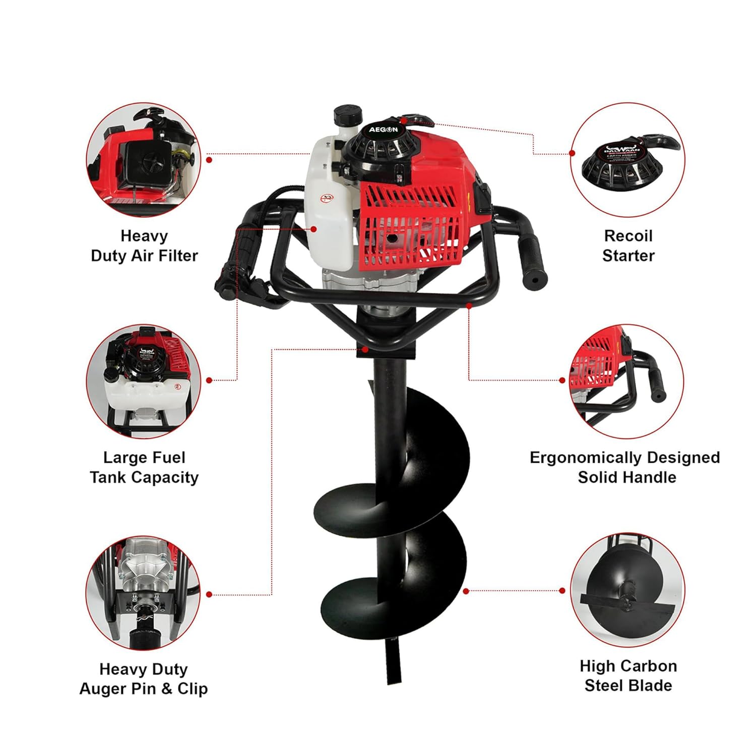 - Upgrade your fencing, plantation, and digging endeavors with the AEGON AEA63 Earth Auger. Its powerful engine, versatile drill bit size, and robust construction make it the perfect tool for efficient and effective hole digging in any soil type. Experience the power, reliability, and durability that the AEGON AEA63 Earth Auger offers and accomplish your outdoor projects with ease.