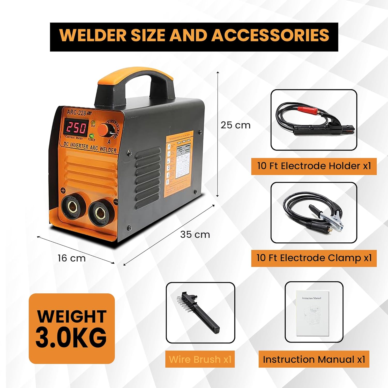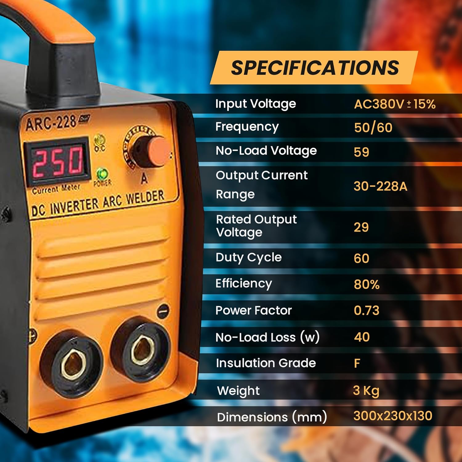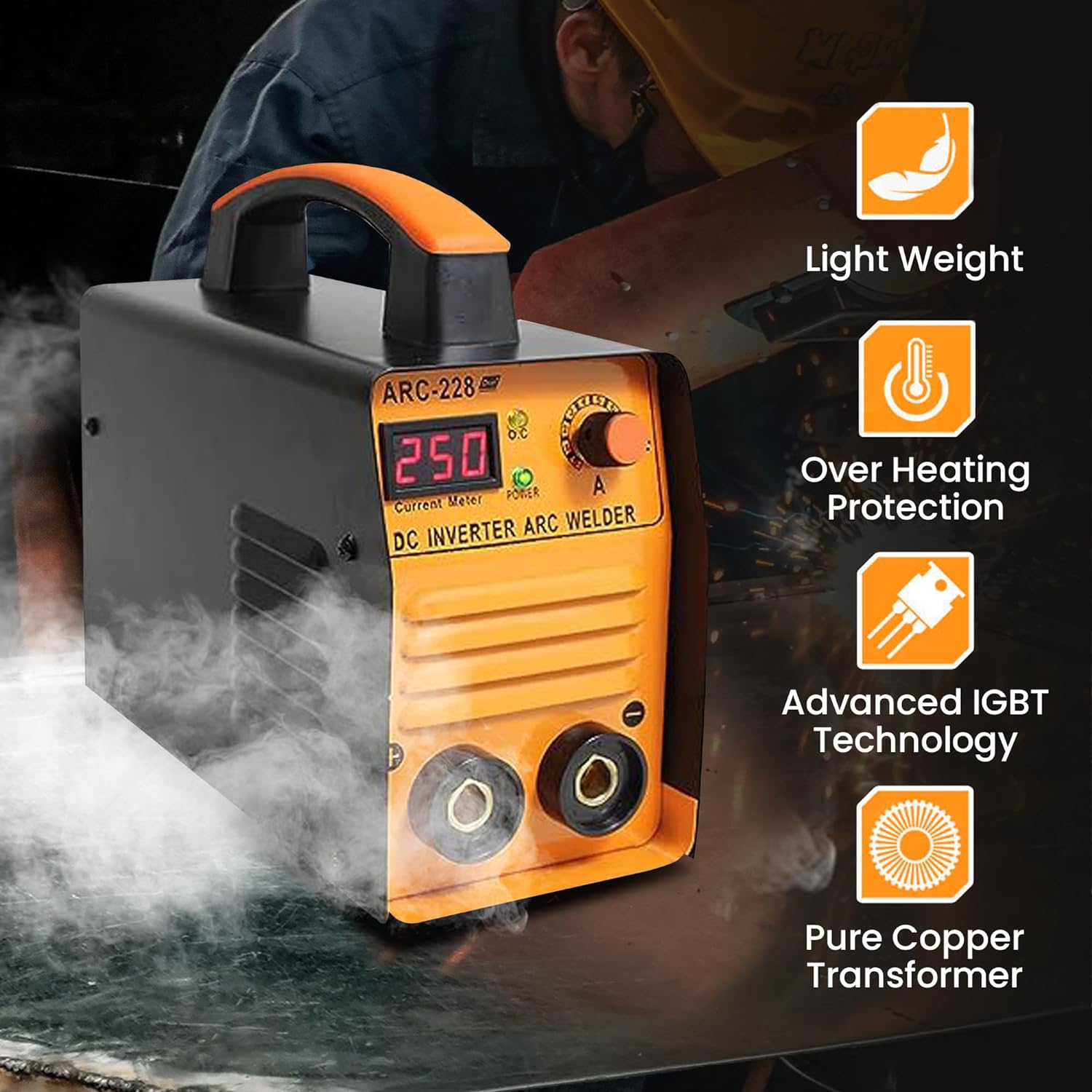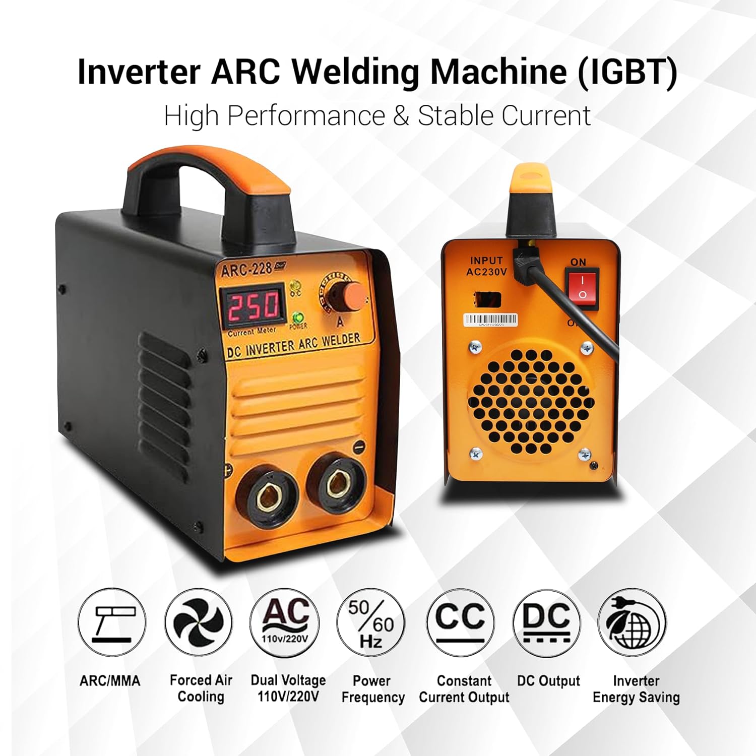 Aegon ARC 228D Portable Inverter Welding Machine (IGBT, Single Phase) 250 Amp With Hot Start and Anti-Stick Functions