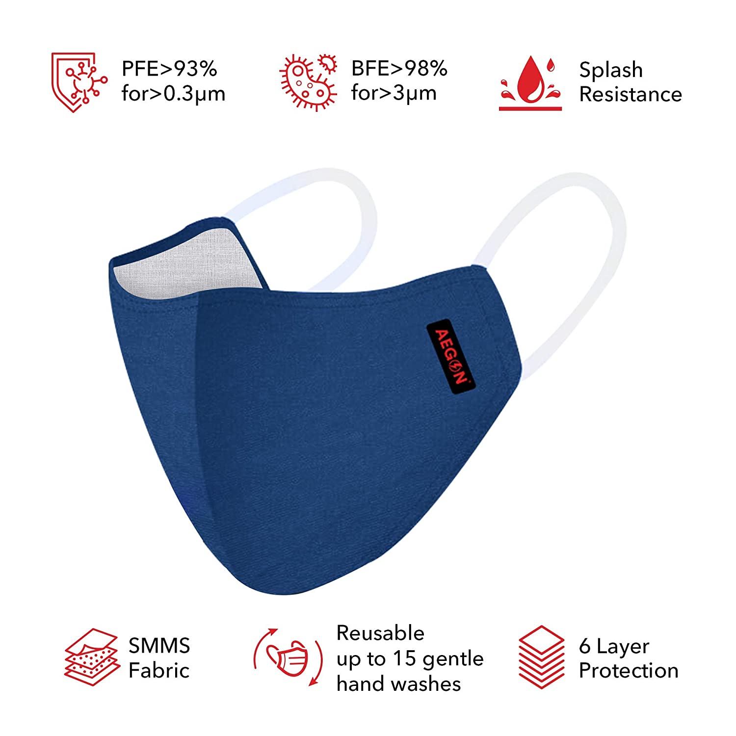 Aegon Atom 9800 SMMS 6 Layer Particle Filter Anti-Pollution Unisex Protection Mouth & Nose Mask (Pack of 3)