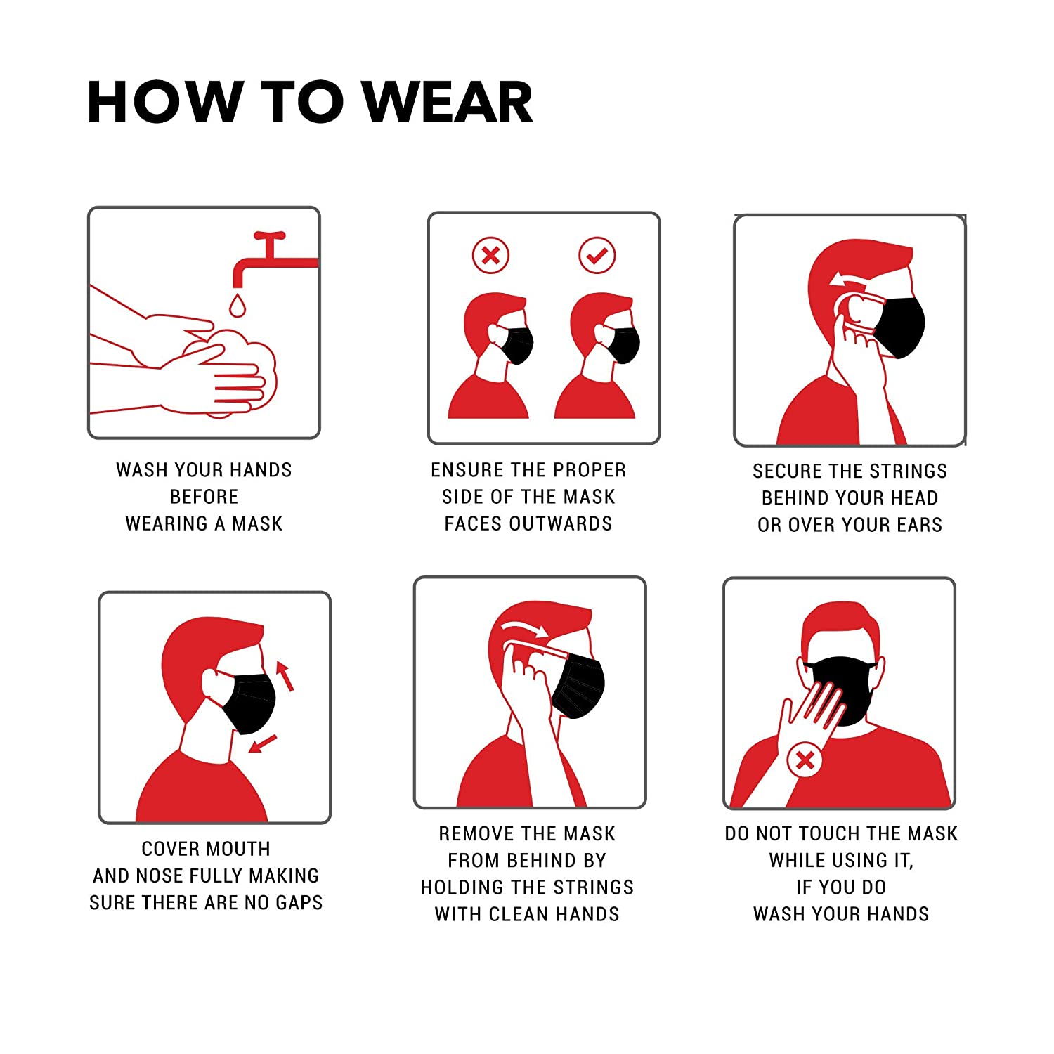 Directions to Use: To wear the mask, hold the ear strings by your hands and face the concave side. Pull the strings over your ears and cover your nose, mouth, and chin properly. Make sure to push the inner layer to create a concave shape and avoid pulling it out.
