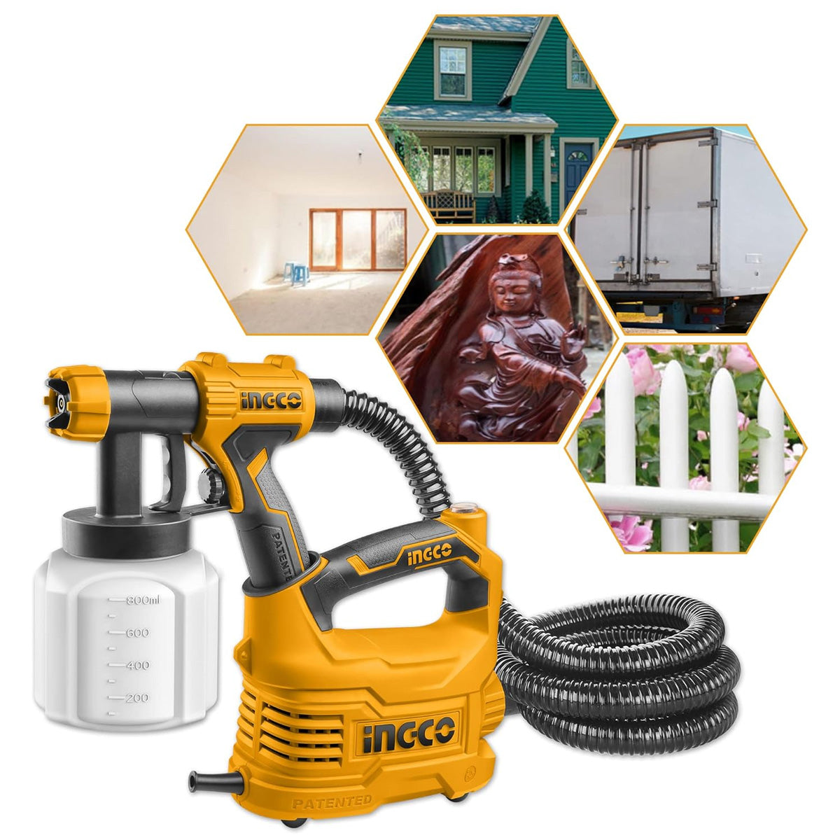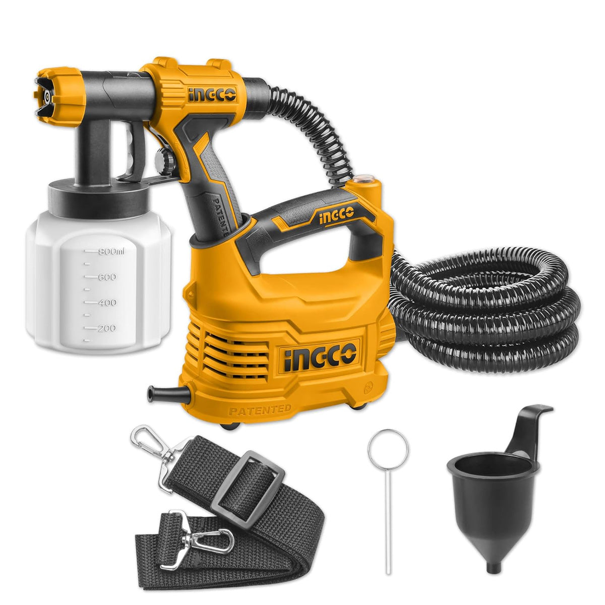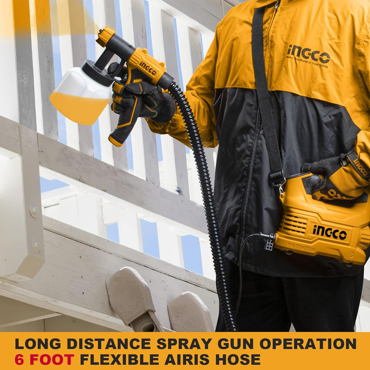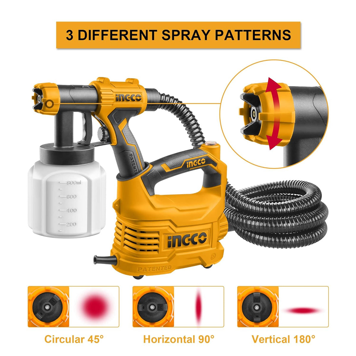 Ingco SPG5008 HVLP Electric Spray Gun - 3 Spray Patterns, 500W, 850ml Flow, Adjustable Valve Knob, Ideal for Indoor & Outdoor Projects