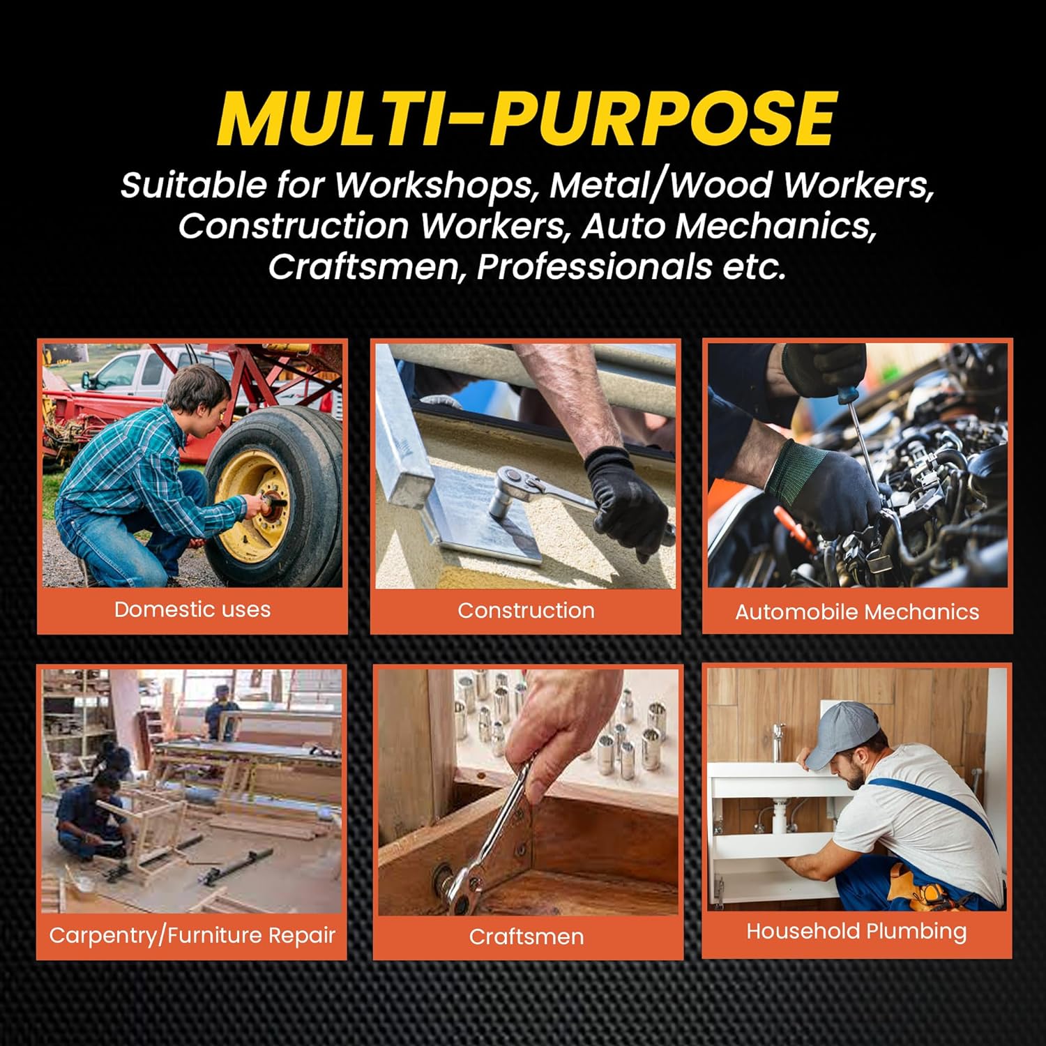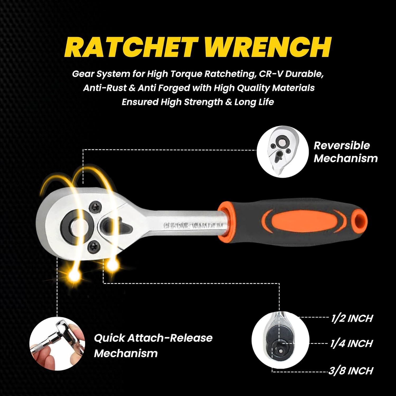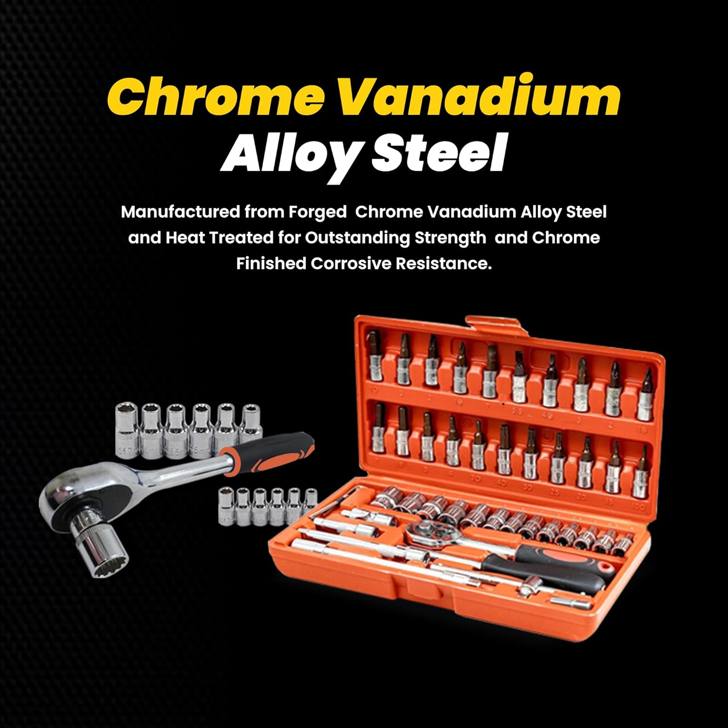 MAF Heavy Duty 1/4" Combinational Ratchet Socket Wrench Spanner 46 Pieces Chrome Vanadium Hand Tool Kit Set For Repairing Work, DIY, Auto Repairs Car & Bike (Assorted Colors)