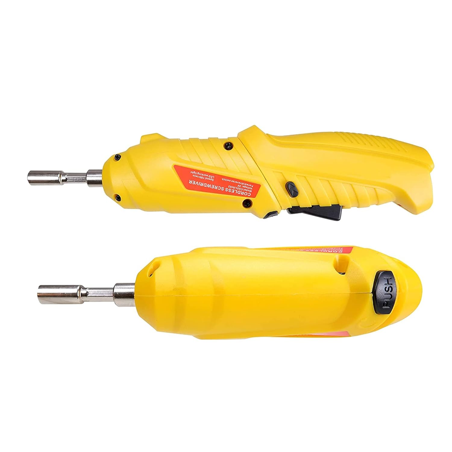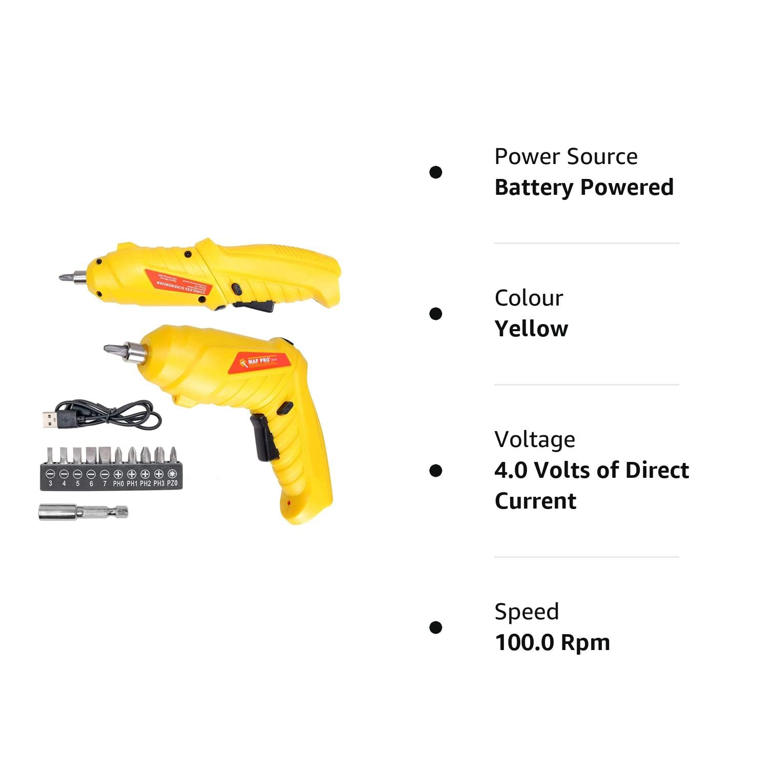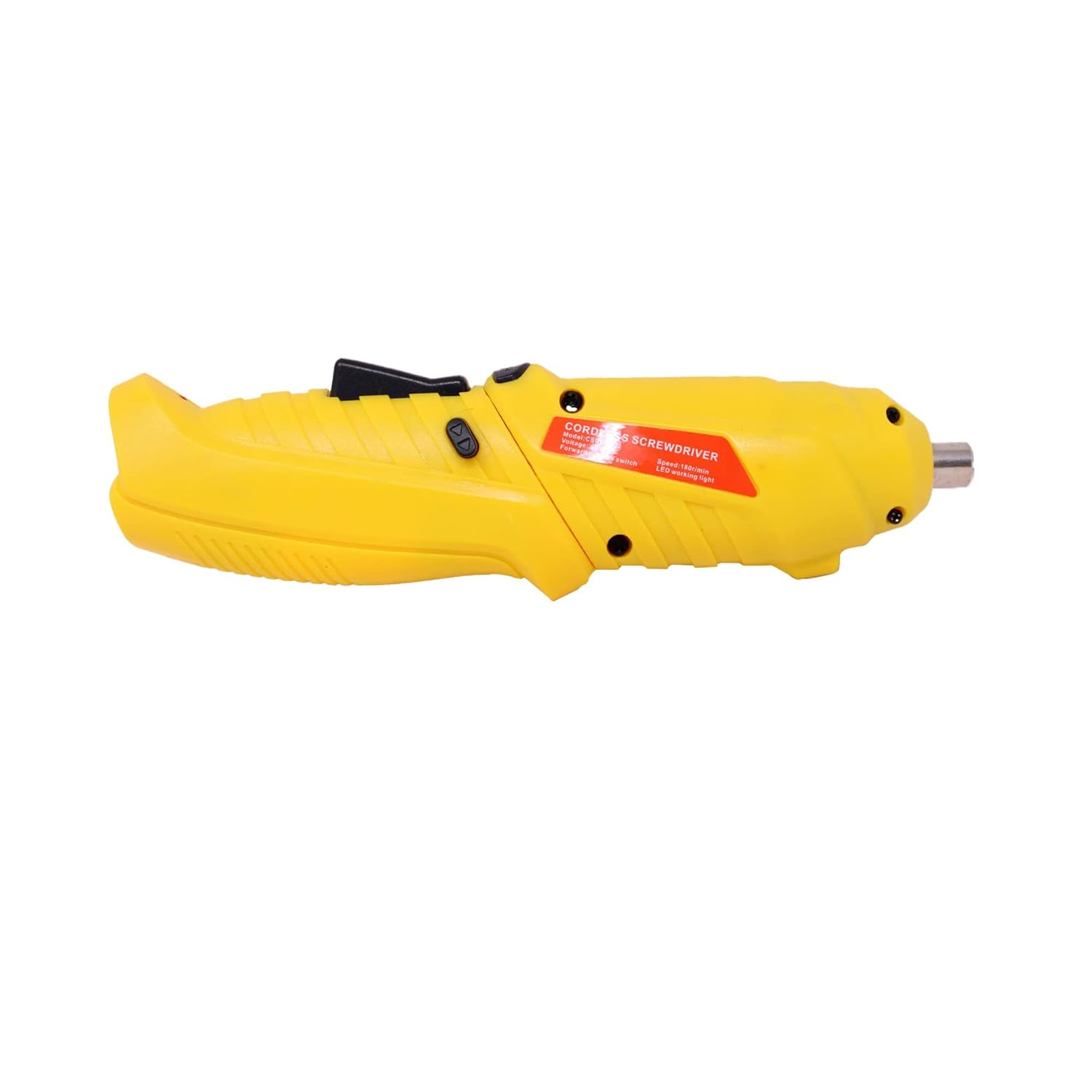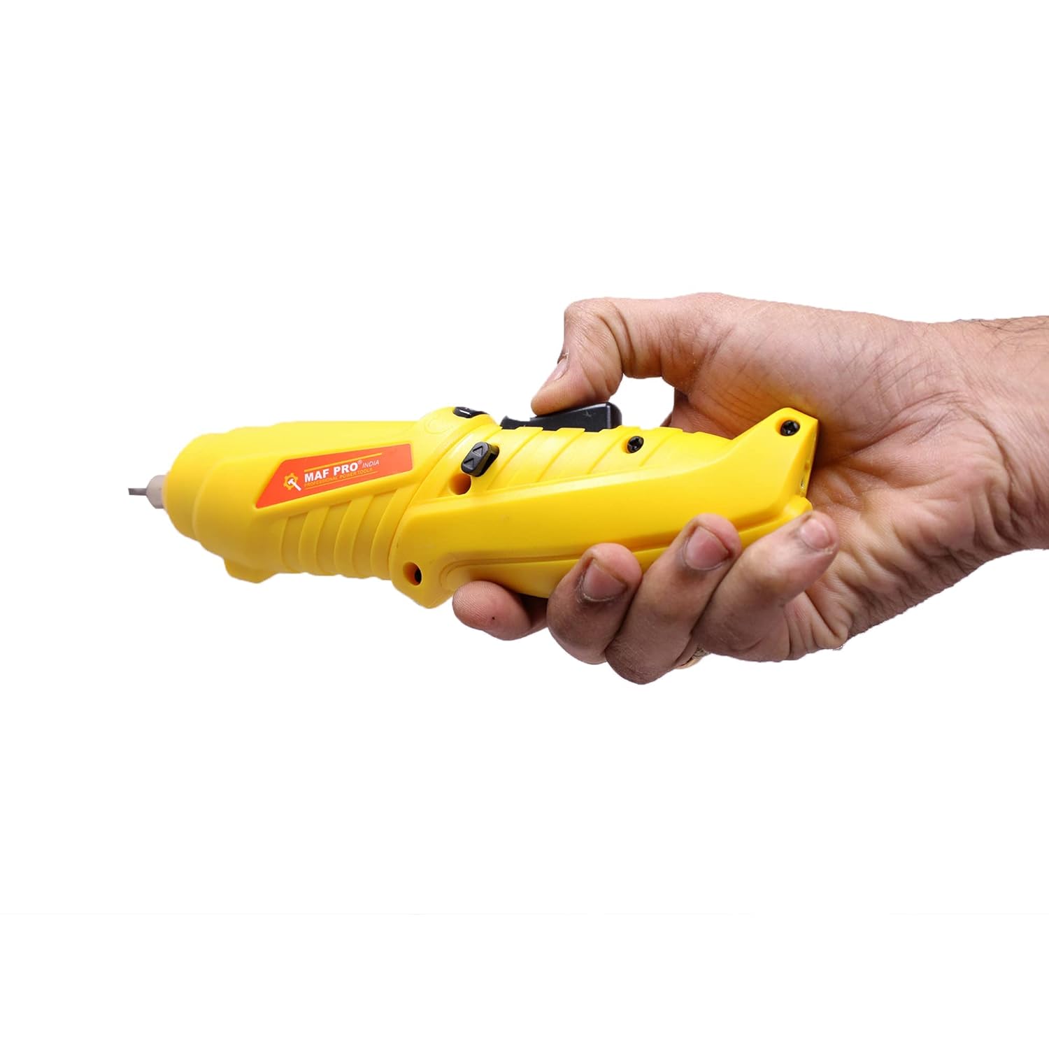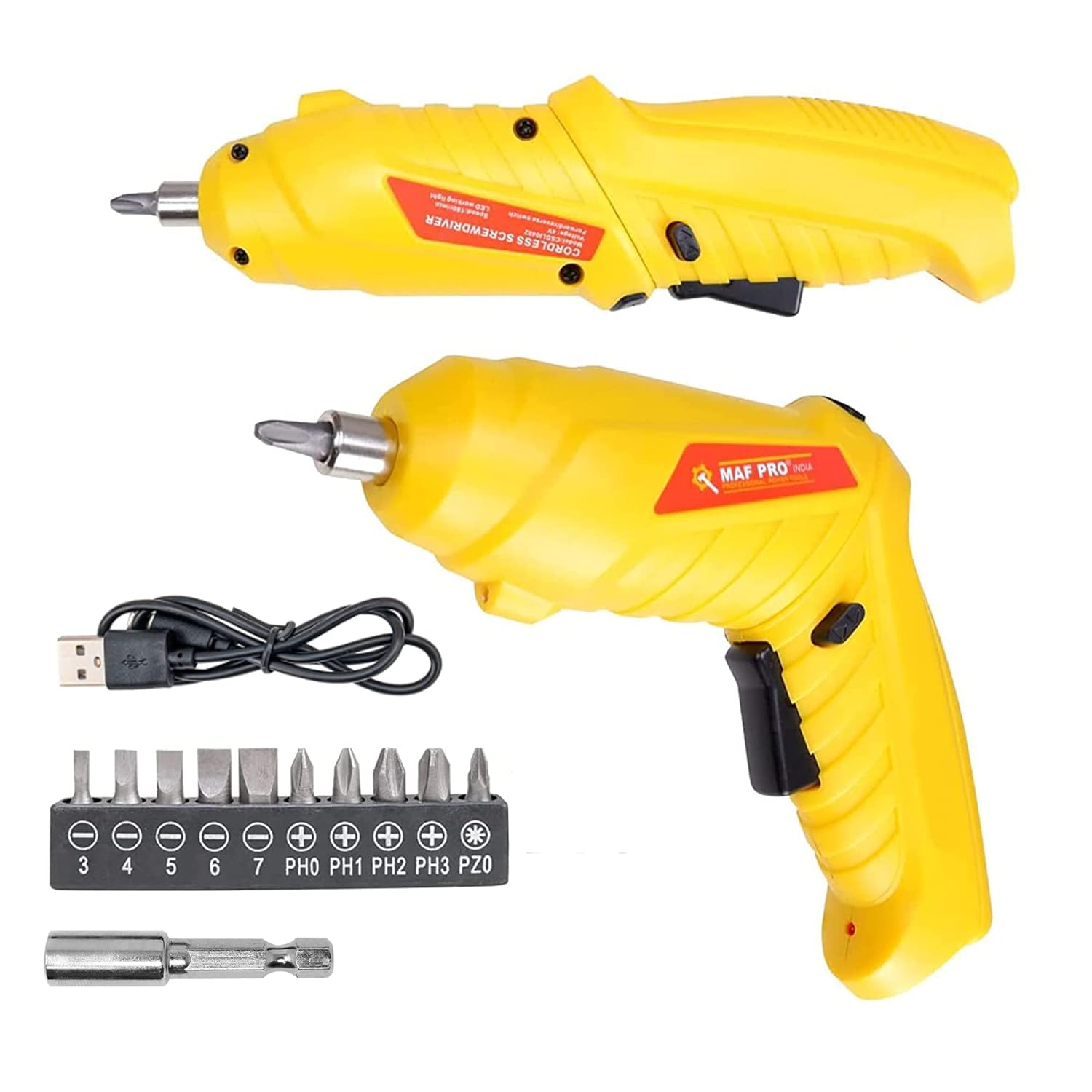 MAF PRO CDSLI0402 4V Cordless Screwdriver Kit with LED Light, Rechargeable, 90° Rotatable (11 Pieces, 6.35mm, Yellow)