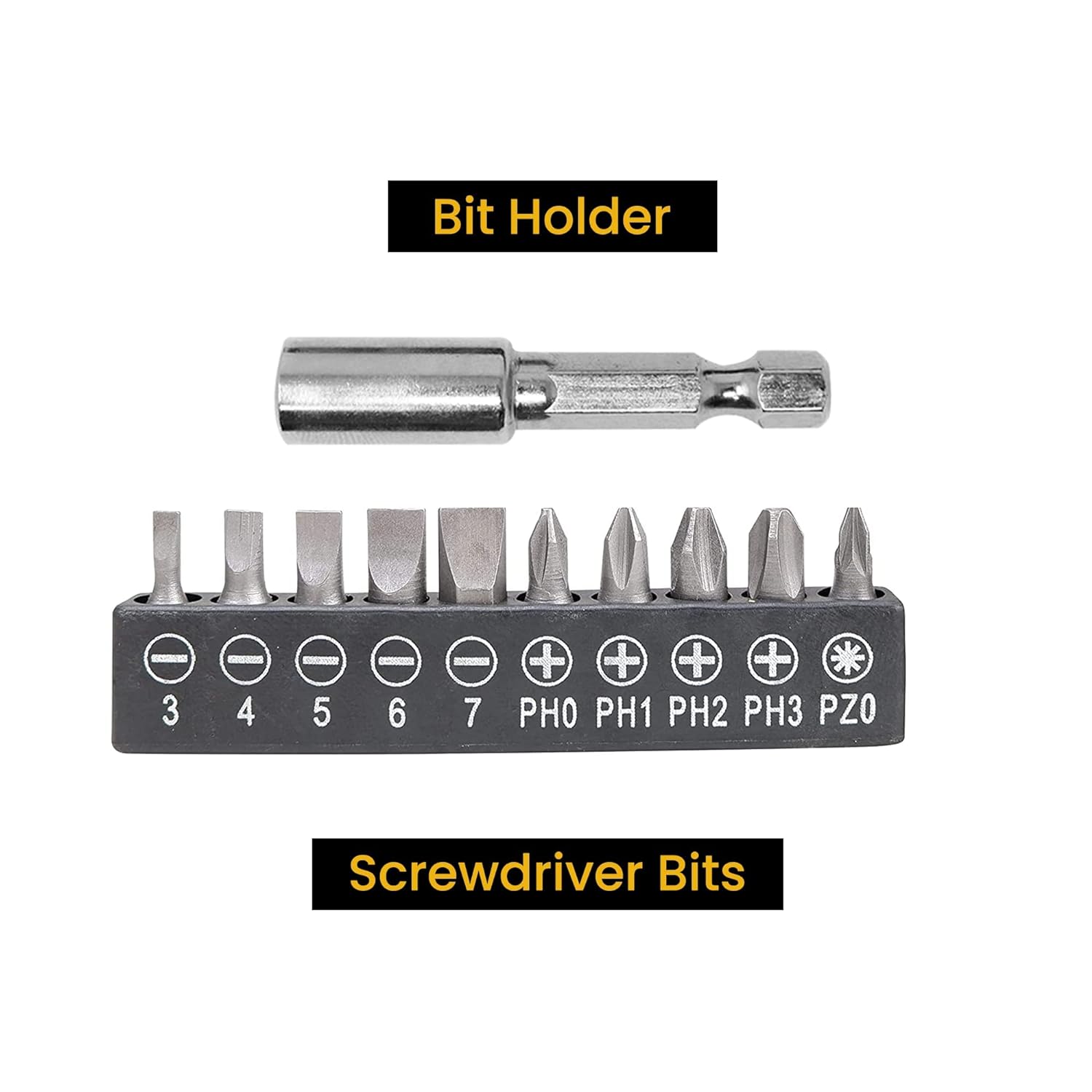 1 x Cordless Screwdriver, 1 x Bit Holder, & 10 x Screwdriver Bits