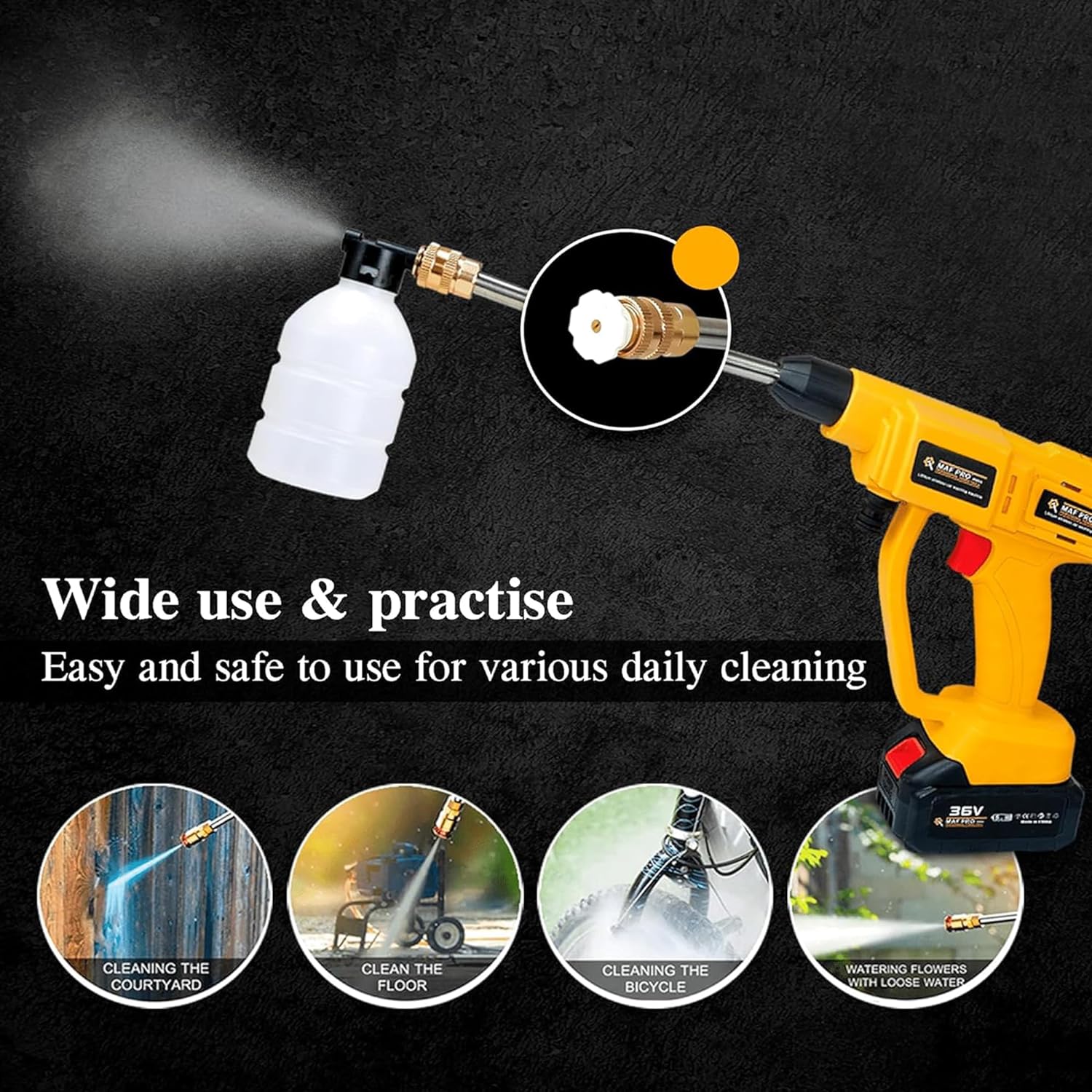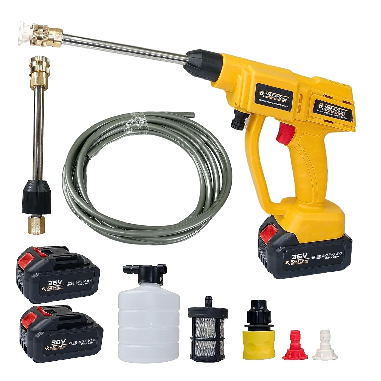 MAF PRO MPCCW-1021 Cordless 36V Battery Powered Pressure Washer Car Washing Gun with Shampoo Bottle Attachment, 2 Nozzles & Water Suction Filter