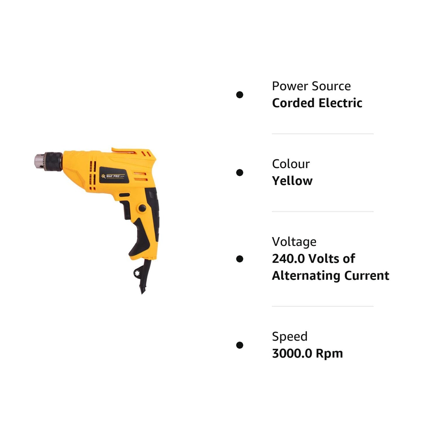MAF PRO MPED-10 450W 10mm Electric Drill, Copper Armature, Forward/Reverse with Variable Speed Control (3000 RPM, Chuck 10 mm)