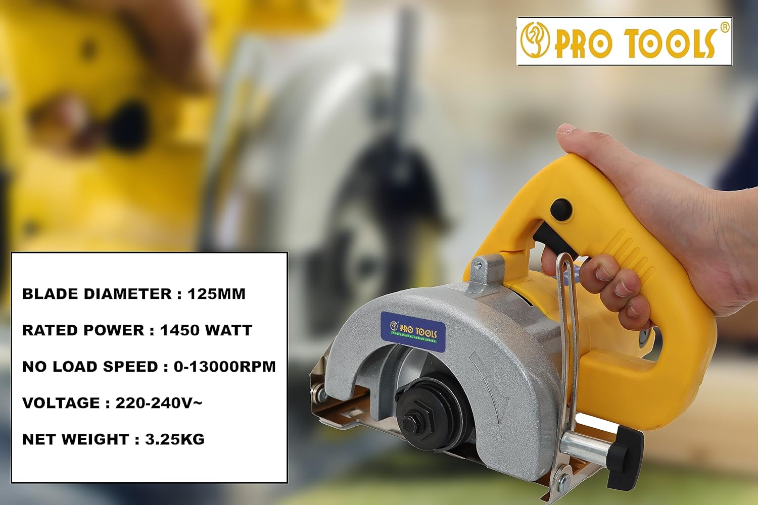 PRO TOOLS 1425-A, Marble/Tile/Granite/Stone/Brick/Porcelain/Ceramic Cutter without Blade (1450 W, 13000 Rpm, 5 Inch)