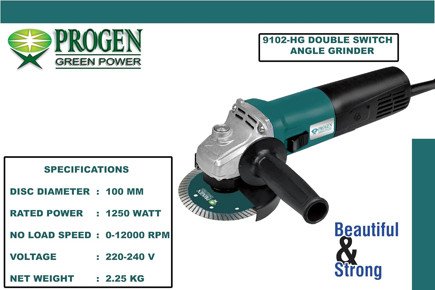 • High-Powered Performance: The 1250W motor ensures a potent and efficient performance, making the PROGEN 9102-HG ideal for demanding tasks in grinding, cutting, and polishing.