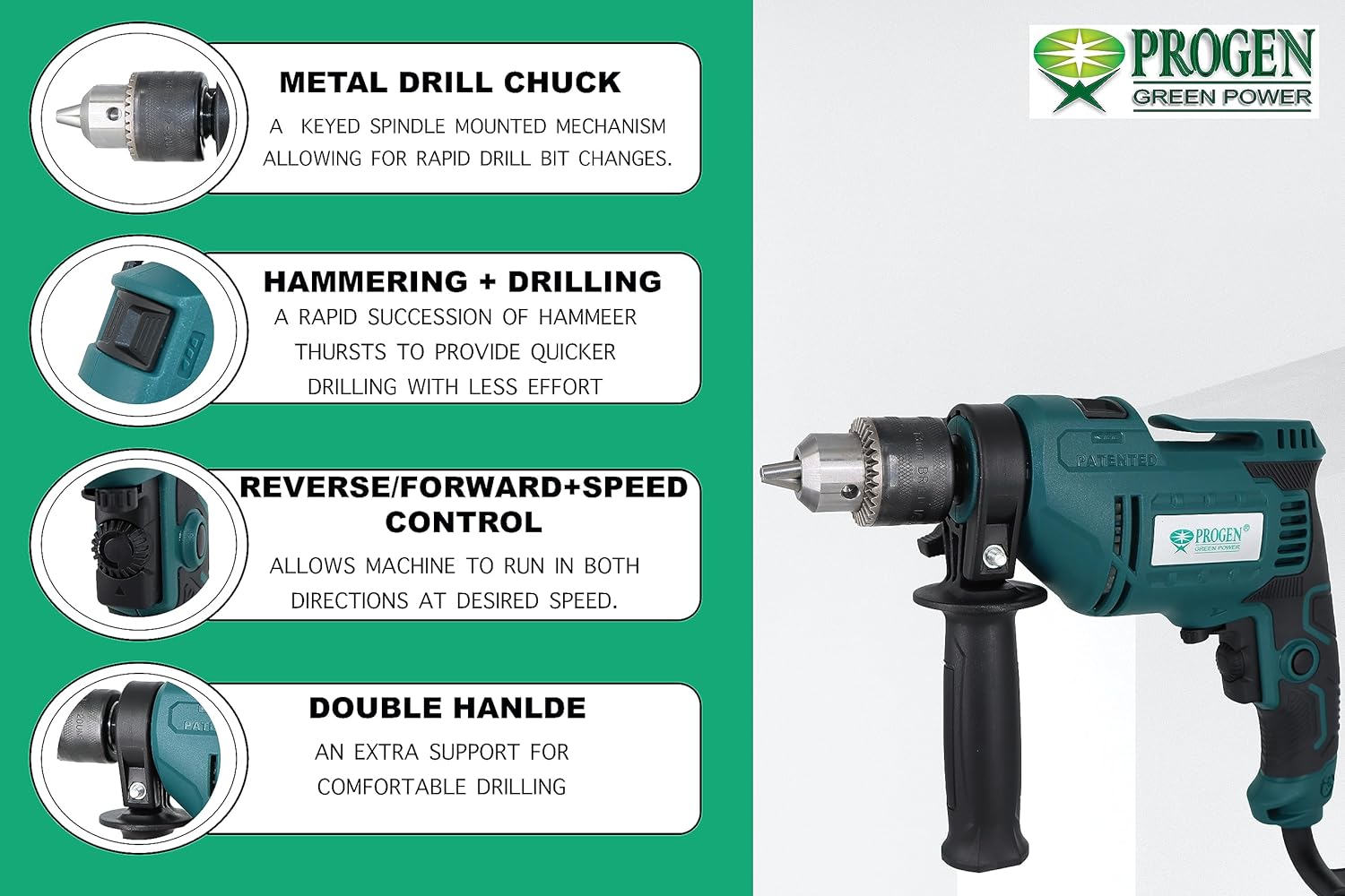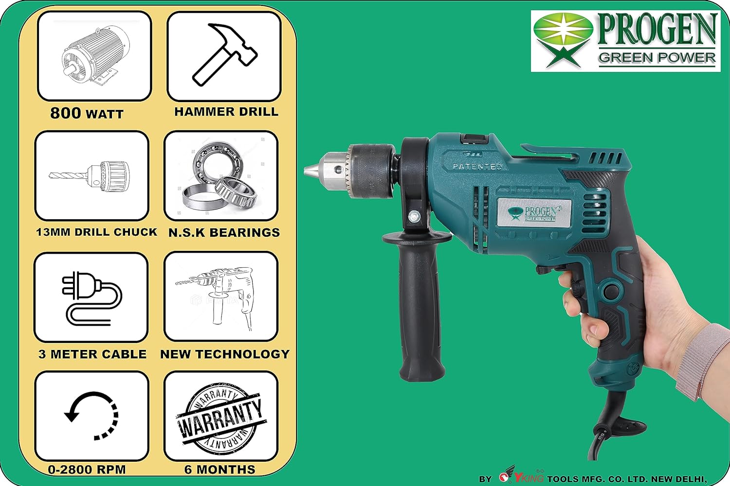 PROGEN 9213-HG 800W Electric Impact Drill 13mm with Forward/Reverse Function with Variable Speed Control ( Copper Armature, 2800 RPM, Chuck 13mm)