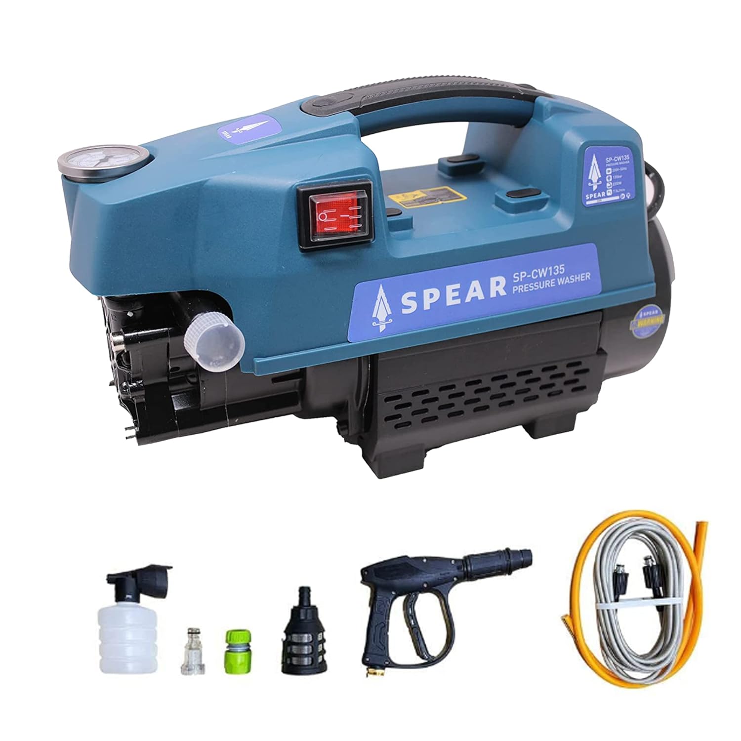 • Effective HIGH PRESSURE CLEANER: Spear offers a highly powerful car pressure washer to ease the requirements of different washing functions. Fitted with a powerful brush motor with strong strength, this unit has an outstanding water filtration system and the high pressure pipe washes the stubborn dirt away so easily.